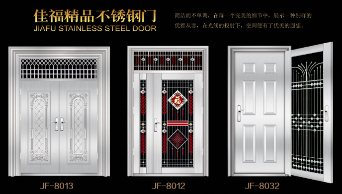 本公司成立于2004年,已有19年的生產(chǎn)進(jìn)戶門的經(jīng)驗(yàn)積累。公司現(xiàn)擁有鋼質(zhì)非標(biāo)門生產(chǎn)線、標(biāo)門生產(chǎn)線及不銹鋼門三條生產(chǎn)線,我公司專業(yè)設(shè)計、制造、銷售鋼質(zhì)系列進(jìn)戶門、防盜門、不銹鋼門等產(chǎn)品,擁有“宇佳?盈福”和“佳有福”、“家福.興隆”三個自主品牌和產(chǎn)品系列。公司引進(jìn)了先進(jìn)的生產(chǎn)技術(shù),配置了成龍配套的現(xiàn)代化生產(chǎn)流水線。產(chǎn)品工藝成熟,質(zhì)量上乘。同時,公司廣納賢才,聚集了一批具有開拓創(chuàng)新精神的各類高級管理和技術(shù)人才,建立了一套先進(jìn)的管理模式。